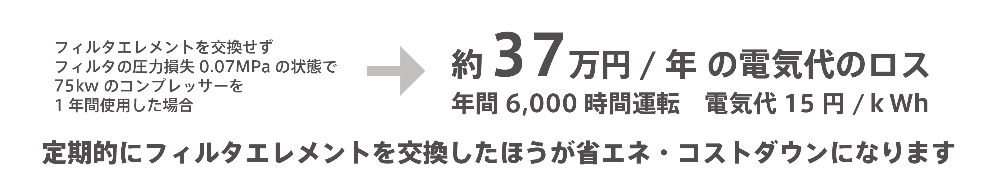おおよそ1年に一度のフィルタエレメントを交換してください。常に安定した性能を維持するためにも定期的な交換をおすすめいたします。